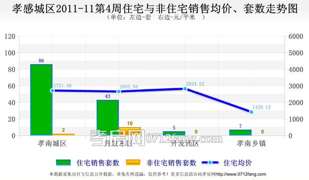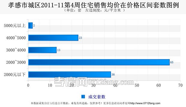 一周楼市走势相关数据是以孝房网市场研究调研和统计处理得出,由于周价格受该周成交的楼盘及楼盘成交的具体房屋影响较大,故一周走势能反映短期的变化状态,不能代表长期的走势,供市民参考。