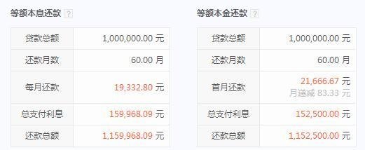 1、如果你住房贷款了100万元,供5年,那么: