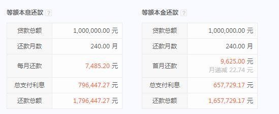 同样条件下,如果按等额本金还款计算,此前月还款9625元,每月递减22.74元。降息后,月还款降为9291.67元,每月递减21.35元。