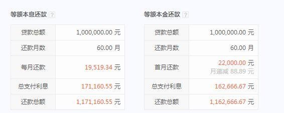 (等额本金:等额本金是指一种贷款的还款方式,是在还款期内把贷款数总额等分,每月偿还同等数额的本金和剩余贷款在该月所产生的利息,这样由于每月的还款本金额固定,而利息越来越少,贷款人起初还款压力较大,但是随时间的推移每月还款数也越来越少。)