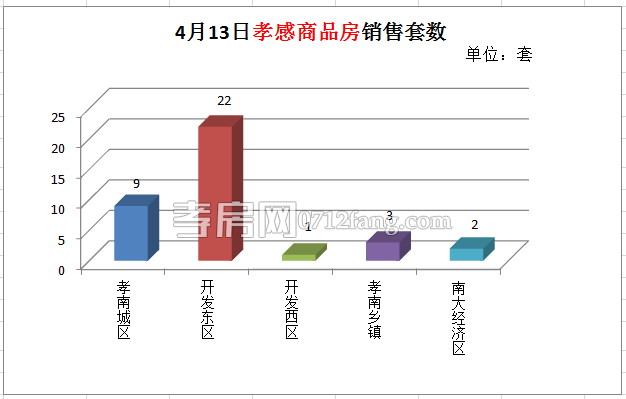 4月13,全市的销售套数为37套。其中孝南城区为9套,开发东区为22套,开发西区为1套,孝南乡镇为3套,南大经济区为2套。